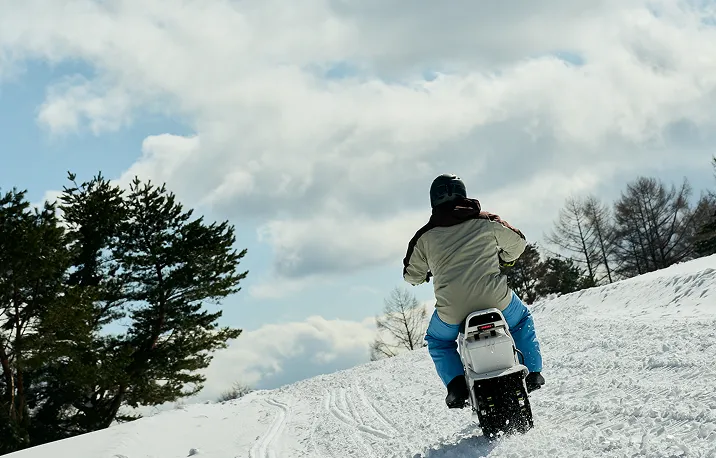 Feel the excitement as you glide over snowy landscapes with the unique Moon Bike.